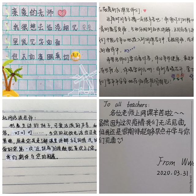 在线上教学中,同学们反馈同学之间、师生之间无法像线下教学那样达到及时、高效的交流。但几百甚至几千公里的距离无法阻隔同学们紧紧相连的心,大家仿佛一个共同体,每个人的生活都彼此关联。班干部们更是以身作则,尽职尽责地做好班级工作,完美地诠释着班委的带头作用。