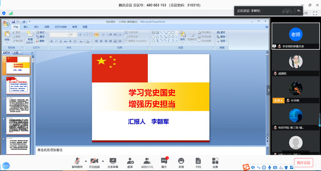 党课结束后,BB贝博艾弗森官方网站党委副书记叶华刚说:“虽然疫情让我们不能够在线下见面,但是李朝军老师的党课内容方富,催人奋进,通过党史、国史的讲述,即使隔着屏幕也让我们感到非常振奋,为我们坚定信念,珍惜当下,努力奋斗,实现中国梦做了一堂极具意义的党课。”最后叶书记指出,希望每位入党积极分子在党课之后结合各个学习小组展开进一步学习和讨论。能够明确自己的初心与使命,用理论指导实践,以实际行动向党组织靠拢。
