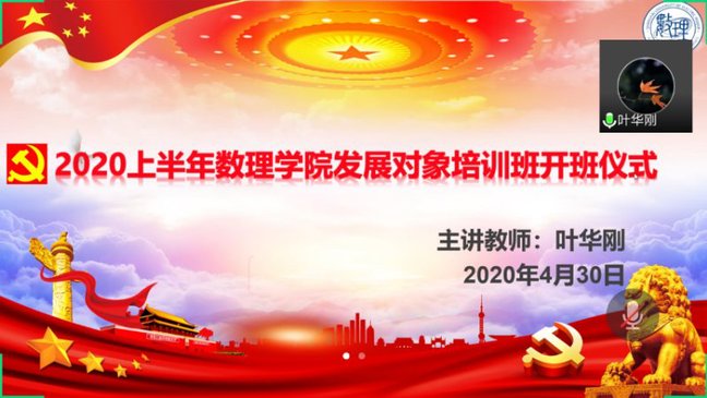 为切实做好学院发展对象的培养、考察和教育管理,规范发展党员工作,坚定理想信念,增强党性修养,4月30日,我院分党校2020年上半年发展对象培训班开班,由于疫情的影响,本次开班仪式在线上举行。学院党委副书记叶华刚、专职组织员吕莹及全体学员参加开班仪式。本次会议由专职组织员吕莹主持,本次开班仪式主要分为四个板块。