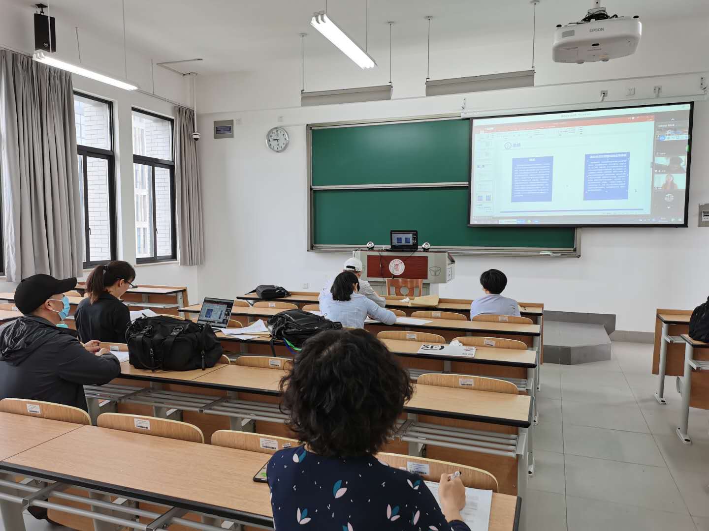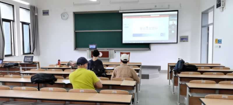 答辩采用线上线下结合的模式进行。线下部分是答辩组评审老师集中在教室,线上部分是学生在线答辩,投影到教室大屏,答辩教室采用全程录音录像记录过程。