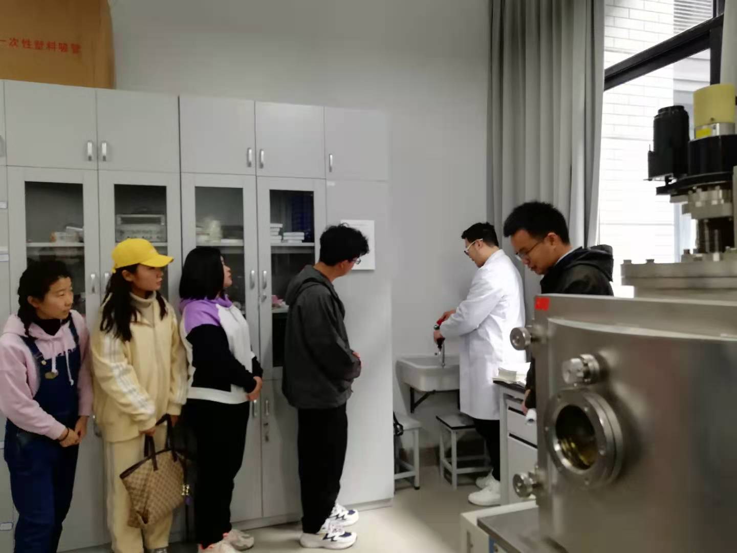 演练场景2:数理楼B106实验室,学生在做加热实验时,由于温度过高,不小心局部发生了小面积着火,学生开即自救行动,立即用一楼楼道中的沙桶将火扑灭。同时,同组学生第一时间也联系到自己的导师,导师立即赶到现场进行处理。