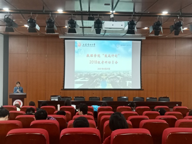 4月29日,BB贝博艾弗森官方网站在临港校区召开“致远计划”2018级考研动员暨经验交流会。学院党委副书记叶华刚、数学系教师李丽花、物理系教师曹海静、毕业班辅导员及全体2018级学生参加。
