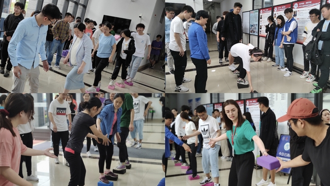 在师生趣味游戏互动环节,来自数学组、物理组及行政组的师生代表队参加了趣味游戏“摸石过河”,各队师生齐心协力,奋勇争先,现场气氛热烈。