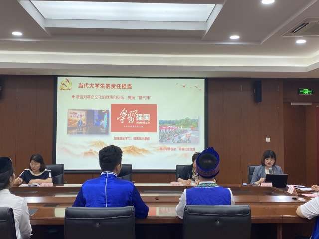 在“学党史”环节,机关党委党办组织统战党支部书记、校党委办公室主任石笑寒从“党的领导是中国自信的根源与保证”、“党的历史是‘四个自信’的书写史”、“学史力行 传承红色基因”三个方面为师生讲授党课,用丰富的案例和生动的语言向预科同学讲述了时代新青年应有的责任与担当。她强调“当代大学要提高政治站位,提升文化甄别能力、增强对中华优秀传统文化的传承和创新,守住‘根与魂’,增强对社会主义先进文化的建设和发展,讲好‘中国故事’,传承初心使命,践行责任担当,更好构筑中国精神、中国价值和中国力量”。