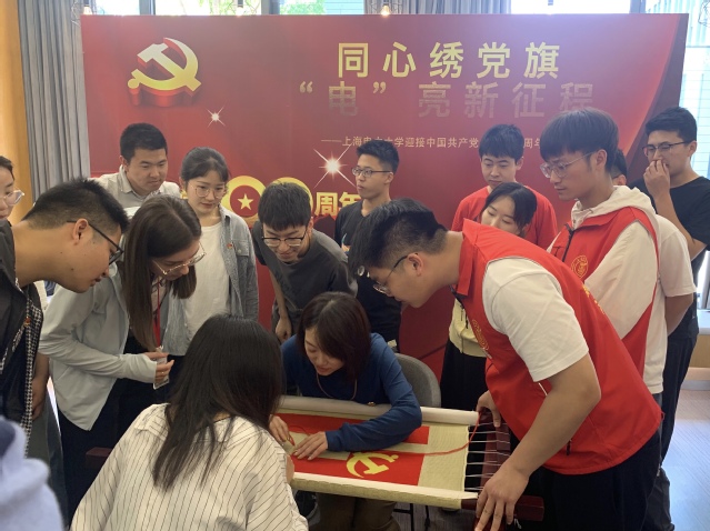 为深入学习贯彻习近平总书记在党史学习教育动员大会上的重要讲话精神,5月,在浦东校区党建服务中心,BB贝博艾弗森官方网站所有支部全体党员参加了“同心绣党旗 ‘电’电亮新征程”活动。