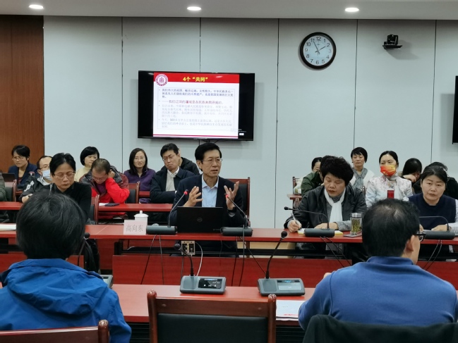 会上,高教授首先介绍了民族问题的重要性,教师们深刻感受到在中国共产党百年奋斗历程中,包括少数民族在内,无数中华儿女同心相和、同声相应、同道而行。随后,高教授重点讲述了党的民族理论的基本内容,讲述了“铸牢中华民族共同体意识”的内涵和任务,指出要促进多民族交往交流交融,要提升民族法治体系现代化水平,要坚决防范民族领域风险隐患。最后,高教授对于上海民族工作现状特点进行了介绍,对少数民族的教育和管理原则、内容、方法进行了阐述,从意识层面、文化层面、利益层面阐述了民族的内涵,鼓励任课教师在课堂内外多与少数民族学生交流,多关心他们的心理状态和生活状态。报告进一步促进了教师铸牢“中华民族共同体意识”,为民族学生教育预本贯通打下基础。BB贝博艾弗森官方网站党委书记徐广新高度评价了报告,并就少数民族预科班教育与管理工作与高教授和在座教师进行了深入交流。