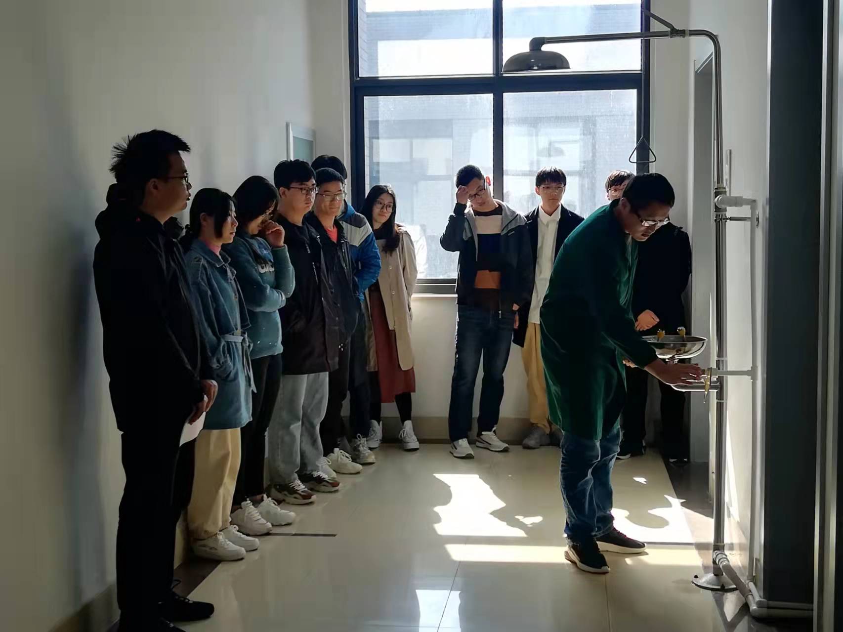 为了防止实验室意外事故的发生,保障实验人员人身安全及健康,并减少因事故造成的人身伤害及财产损失;进一步加强师生建立个人安全意识,主动学习知识以及注意安全行为,熟悉安全事故发生时所要采取的措施和流程,增强全体师生在突发公共事件下的应急反应和自救、互救能力;2021年11月8日上午10:30,BB贝博艾弗森官方网站在临港校区B2数理楼组织开展安全应急演练,主要内容是:1.应急喷淋洗眼装置的使用;2.消防沙灭火沙桶、灭火器的演练。学院分管领导、实验中心主任、研究生导师和学生等40余人共同参加了此次演练活动,学院副院长林佳担任演习总指挥,校实验室与资产管理处杨勇、浩莹老师应邀到场指导。