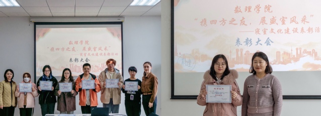 会上,杨雪艺介绍了本次活动的评选方式和过程,并宣读了获奖寝室名单。经过学生自主申报、评审小组检查打分、网络投票,全院评选出标兵寝室1间,文明寝室3间,文明创建寝室6间。各位老师为获奖宿舍颁奖并发放了奖品。