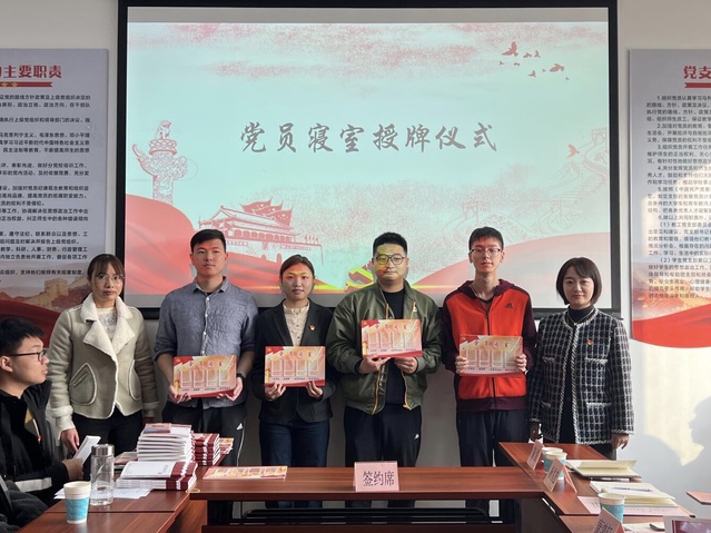 为推进“我为群众办实事”实践活动走深走实,本次寝室文化节鼓励全体学生党员“亮身份,做表率”,以“红色”党建引领“绿色”生活,全员参与文明寝室创建工作,学院对党员寝室进行了授牌和挂牌仪式。