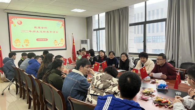 老师们一一询问同学们的假期安排和在校生活学习情况,同学们畅所欲言,现场气氛热烈。来自陕西的本科一年级学生杨致津表示,虽然是第一次在外过年,但是学校学院的精心安排让自己体会到了“家”的温暖,与研究生本科生学长学姐们相处得很愉快,希望自己能在假期多多“充电”,收获更多成长。来自河南的研究生苏彦妃说,因为疫情原因选择在学校过寒假,但寒假生活并不枯燥乏味,可以利用学校的平台和资源多做实验、多读文献,提升科研水平。寒假留校期间得到了学院和老师们无微不至的关怀,充分感受到了“数理大家庭”的温暖。