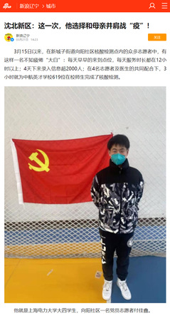 距离上海1700多公里的沈阳市沈北新区新城子街道向阳社区,也有这样一名不知疲倦的“大白”。每天早早的来到点位,每天服务时长都在12小时以上;4天下来录入信息超2000人;在4名志愿者及医生的共同配合下,3小时就为沈阳市中航英才学校619位在校师生完成了核酸检测。他就是BB贝博艾弗森官方网站信息与计算科学专业大四学生,信物本科生高年级党支部党员付佳鑫。
