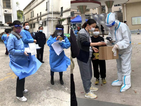 3月下旬,上海市浦东新区川沙镇新苑居委进行集中的抗原检测筛查,BB贝博艾弗森官方网站信物本科生高年级党支部党员、信息与计算科学专业大四学生马宣雯看到志愿者招募的信息,主动去社区报到,对抗原检测的试剂与物品进行分类包装下发给社区居民。由于该社区有许多年迈的居民,她穿上了蓝色防护服、面罩与手套,和居委工作人员一起前往社区所管辖的四个小区,耐心地向居民讲解抗原检测的步骤,并且细心地指导居民完成检测,确保每位居民抗原检测有效。