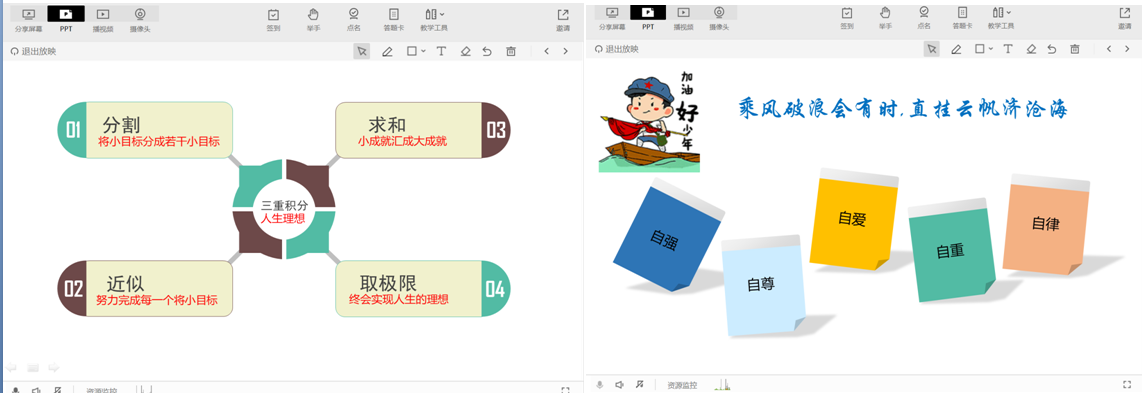 课程思政一直在路上。高等数学教研室结合当前疫情防控形势,积极探索思政资源,充分挖掘思政元素,巧妙融入教学过程,使思想政治教育融入人才培养全过程,切实做到“爱学生、有学问、会传授、做榜样”。课上老师们还会播放抗疫一线的感人视频和充满正能量的励志语录,给学生带去鞭策和鼓舞。教与学的关爱互动,透出温润人心的暖暖“思政”味,激励学生以高度的自律精神和不懈努力的意志来进行学习。