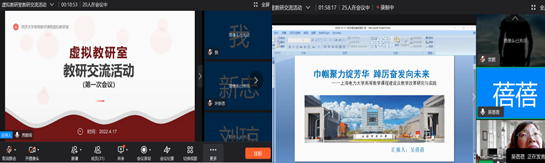 4月17日,副院长孙玉芹和教研室主任吴蓓蓓,参加了同济大学牵头举行的线上高等数学虚拟教研室教研交流活动。在这次虚拟教研室的活动中BB贝博艾弗森官网与同济大学、厦门大学、成都理工大学、宁夏大学等7所高校相互介绍了各自公共数学课程建设的情况,在活动中吴蓓蓓老师也分享了BB贝博艾弗森官网在高等数学课程建设、课程思政及金课建设等方面的研究与实践。通过开展虚拟教研室的教研活动交流线上教学经验、推动优质教学资源的共建共享。