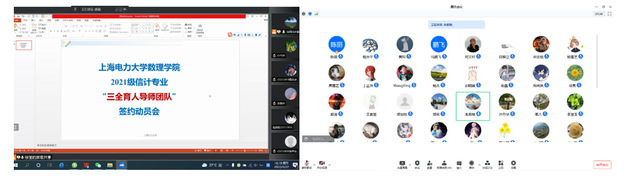 本次的签约活动分为两个环节,第一个环节是由两位系主任分别组织本系的导师和学生开展“三全育人导师团队”签约动员会,为学生讲解“导师制”设置的目的和总体安排,明确了导师和学生双方的责任和义务。第二个环节是各组导师和学生进行线上的见面和签约活动,目的是为了增进双方之间的了解以及对后续的指导活动进行安排。