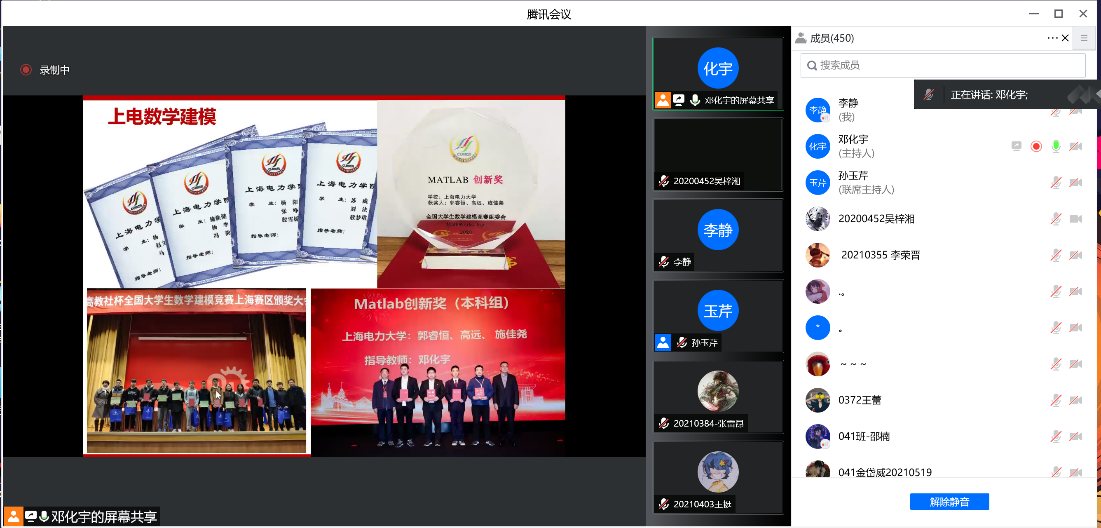 本次会议主要分为三个阶段,首先第一阶段是“数学建模校赛启动仪式”,第二阶段是参赛经历和建模经验的分享,第三阶段是交流互动环节。在第一阶段邓化宇老师为同学们介绍了数学建模的系列赛事和通过参加建模活动同学们能从中收获到什么,以及BB贝博艾弗森官网近年来在数学建模竞赛中取得的成绩和荣誉,并为同学们介绍了2022年BB贝博艾弗森官方网站数学建模竞赛的具体安排。