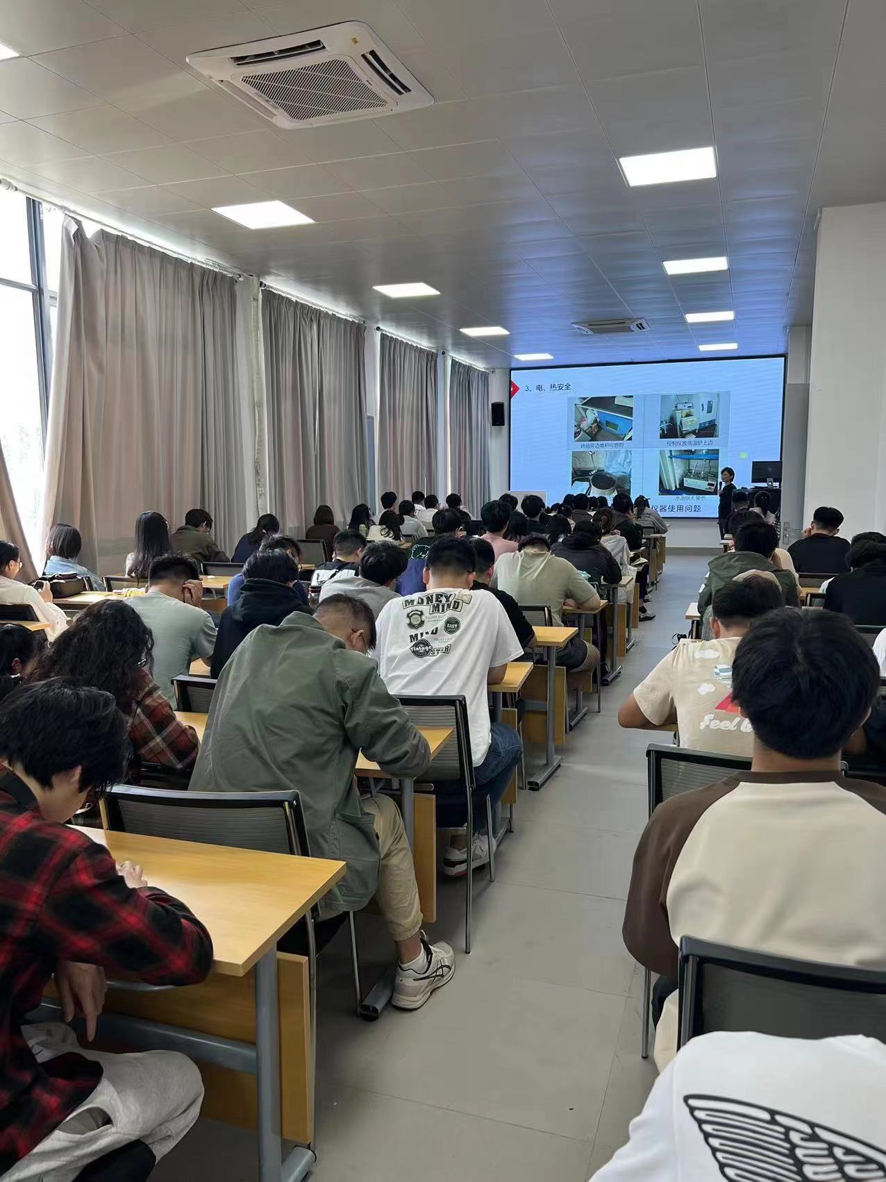 为进一步增强全体师生的消防意识、遇到实验室安全突发事件时的应急反应和自救、互救能力,同时检验我院实验室安全的组织能力、应变能力和实战能力,熟悉安全事故发生时所需要采取的流程,2023年10月24日下午12:20-13:20,我院在临港校区数理楼组织开展安全应急演练,主要内容是:1、实验室安全注意事项讲解(A110);2、应急喷淋洗眼装置的使用及纳米能源实验室注意事项;3、消防沙灭火沙桶、灭火器的演练及超导实验室的注意事项。学院分管安全领导,实验中心主任、副主任,研究生导师和学生等130余人共同参加了此次演练活动。