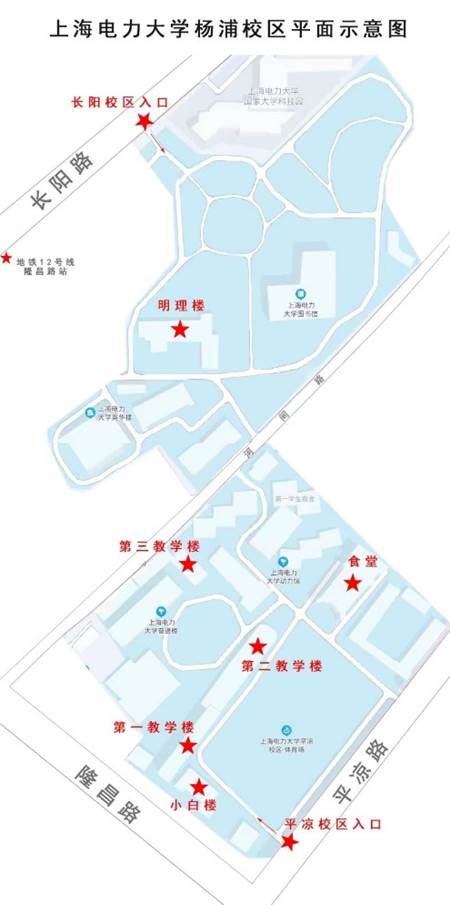 长阳校区考场:明理楼,入口为西北门(长阳路2588号)。