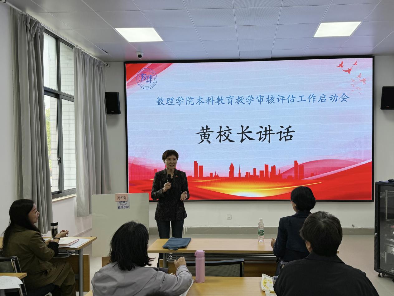 黄冬梅表示新一轮审核评估对于推进高校分类评价,全面落实立德树人根本任务,确保人才培养中心地位和本科教育教学的核心地位具有十分重要的意义,并指出新一轮本科教育教学审核评估较以往出现新导向、新理念、新内涵、新功能等一系列新变化,要深刻把握新变化新要求,更加突出坚持党的全面领导和立德树人指导思想这一新导向,突出教育与教学的有机结合,把立德树人成效作为检验学校一切工作的根本标准。黄冬梅强调新一轮本科教育教学审核评估是对学校本科教育教学和人才培养质量的一次全面总结、全面审视,是对学校整体办学实力、办学水平的一次大检阅、大展示。号召大家要以新一轮审核评估为契机,聚焦学校落实立德树人根本任务中的亮点和不足,与评估专家、毕业生、用人单位与教育行政部门形成“质量共同体”,共同促进学校高质量、内涵式发展,协同推进人才培养质量提升。