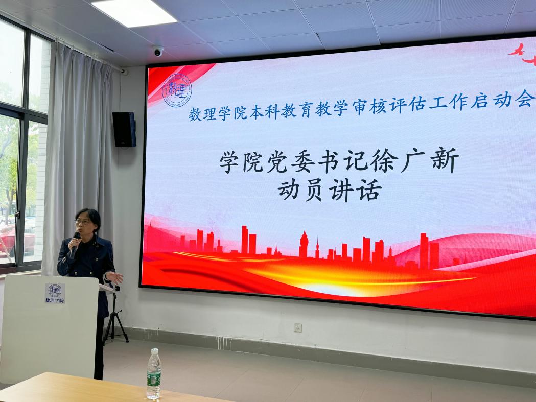 最后,学院党委书记徐广新作动员讲话,她表示新一轮本科教育教学审核评估是深入学习贯彻党的二十大精神和习近平总书记关于教育的重要论述的具体实践,是学校全面贯彻党的教育方针、落实立德树人根本任务的切实行动。学院全体教师应坚守育人初心,并结合工作实际,更好的投入审核评估工作。